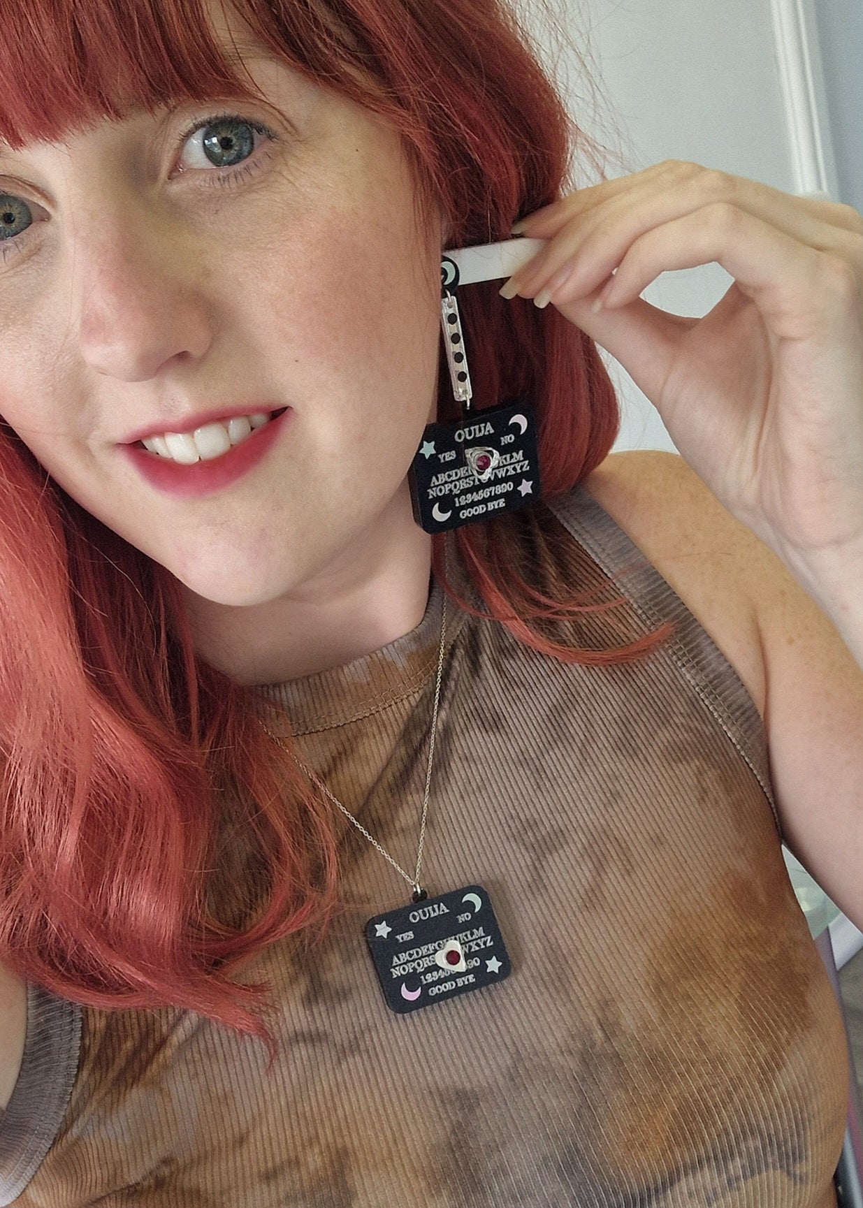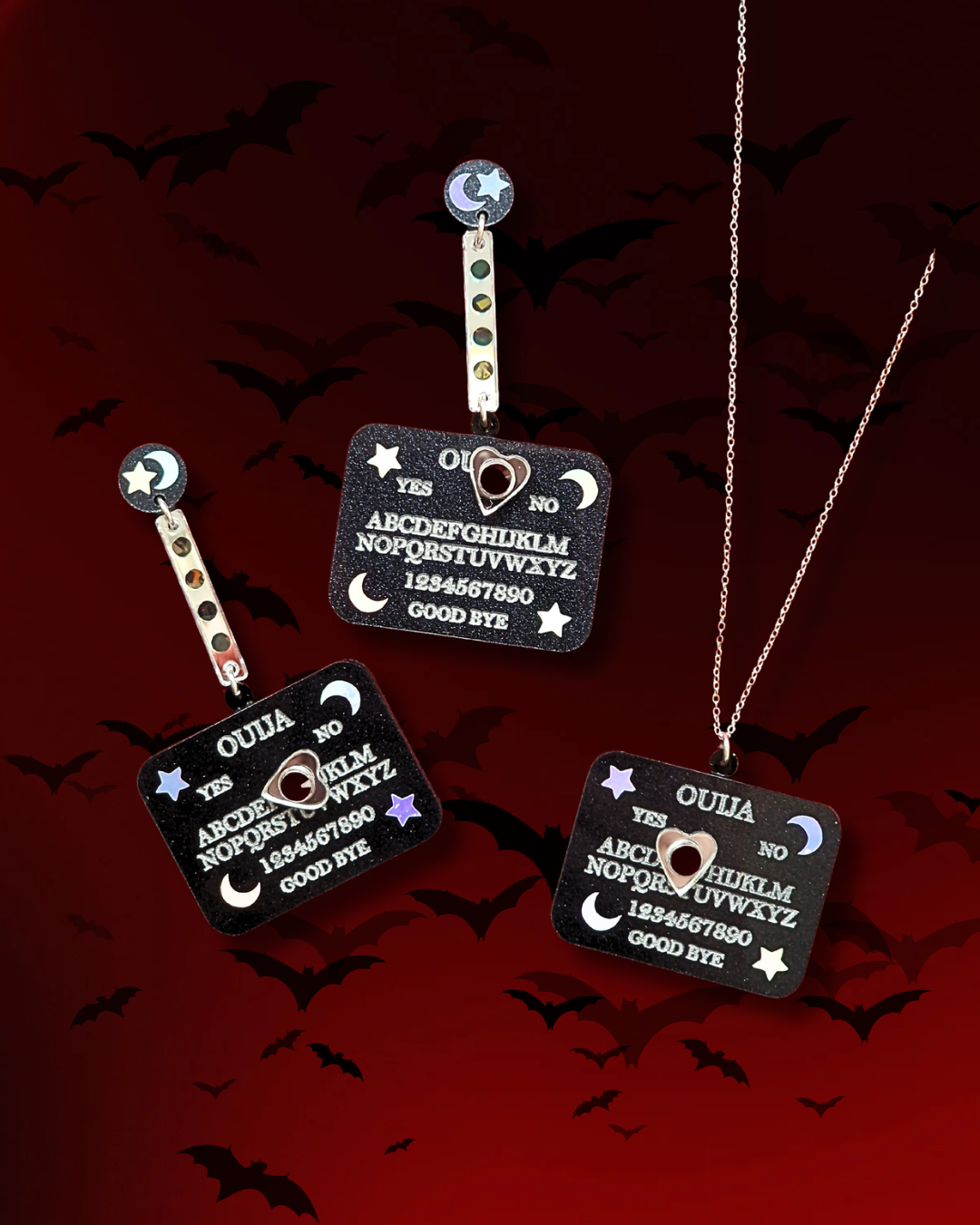 Unleash the supernatural fun with Spooktacular- Day 3. This Ouija board design features a magic moving planchette for an extra dose of spookiness. Perfect for a night of chilling thrills and mysterious adventures. Get ready for a hauntingly good time!