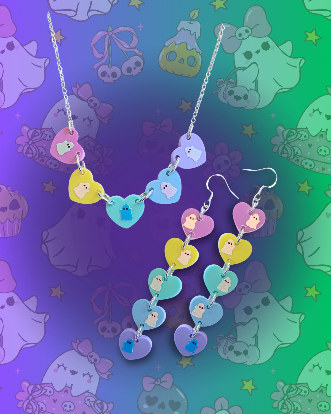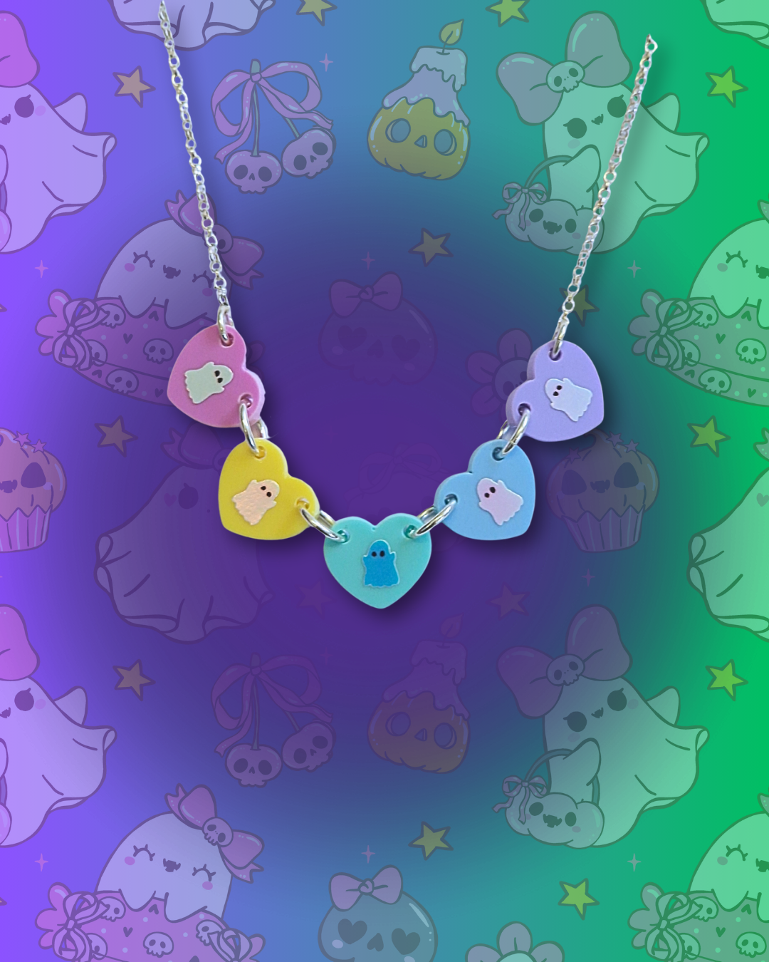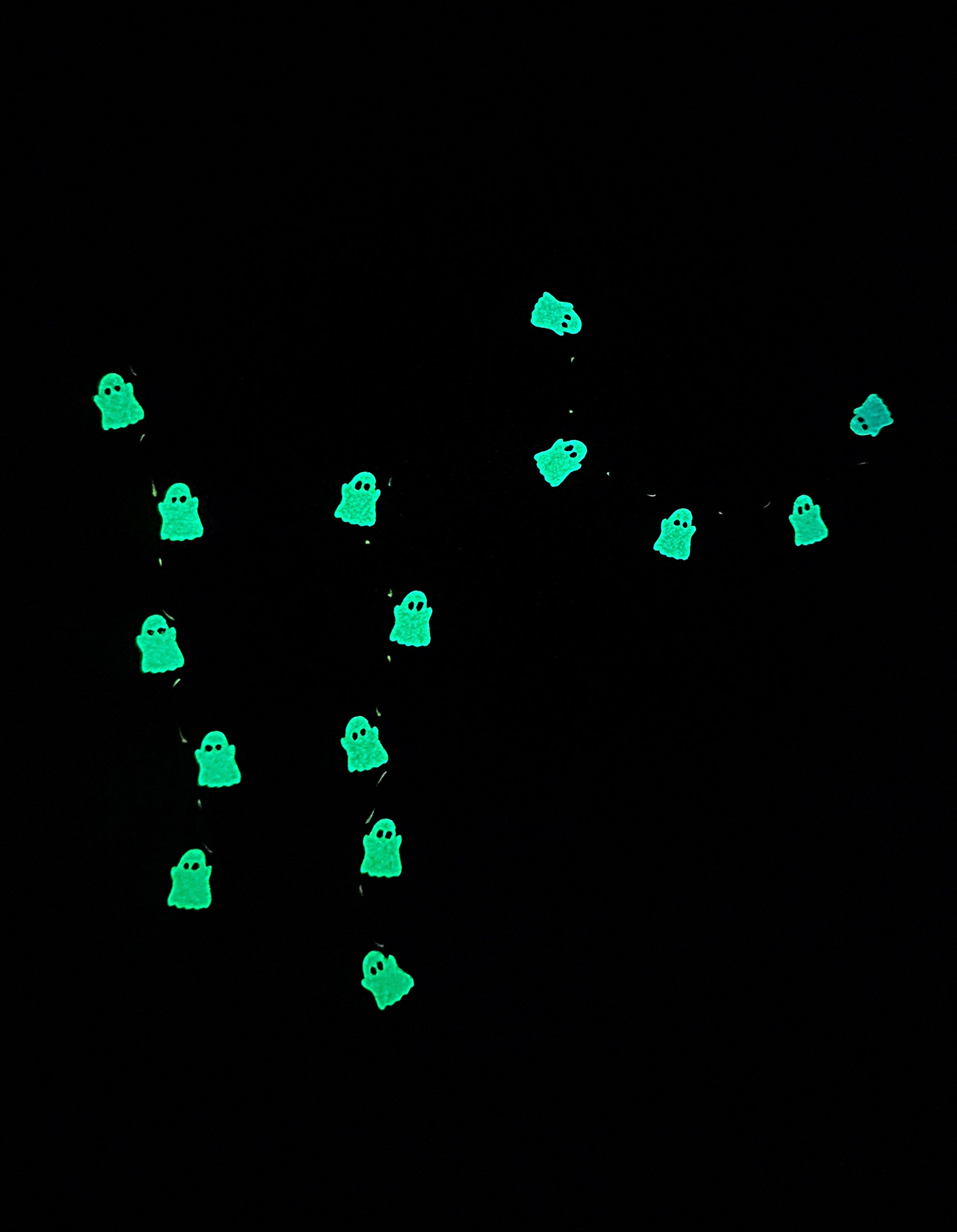Get ready for a Spooktacular time with our Day 5 design! Choose from a colourful or dark version, both featuring cute mini glow in the dark holographic ghosts. Perfect for adding a touch of Halloween fun to any outfit. ππ»