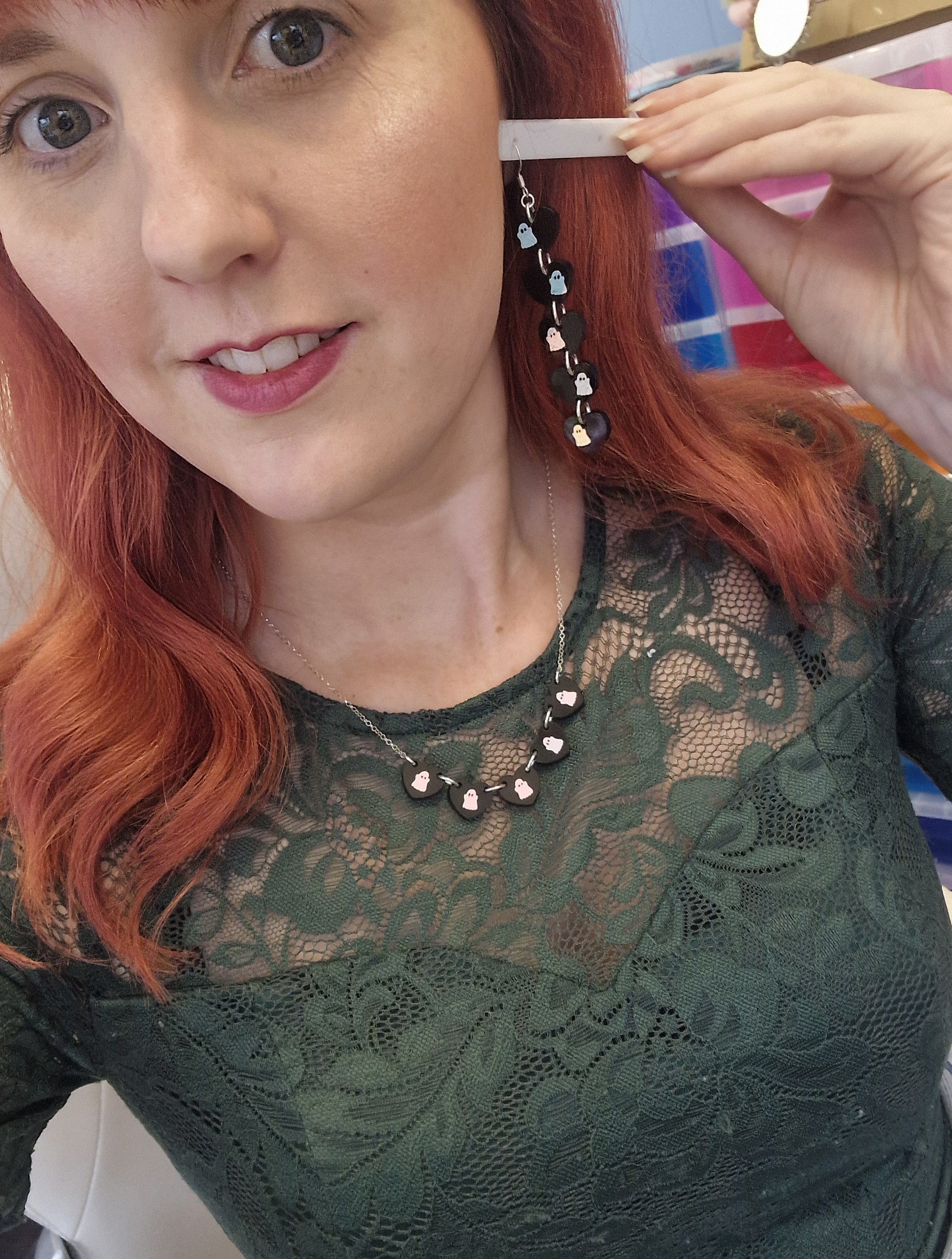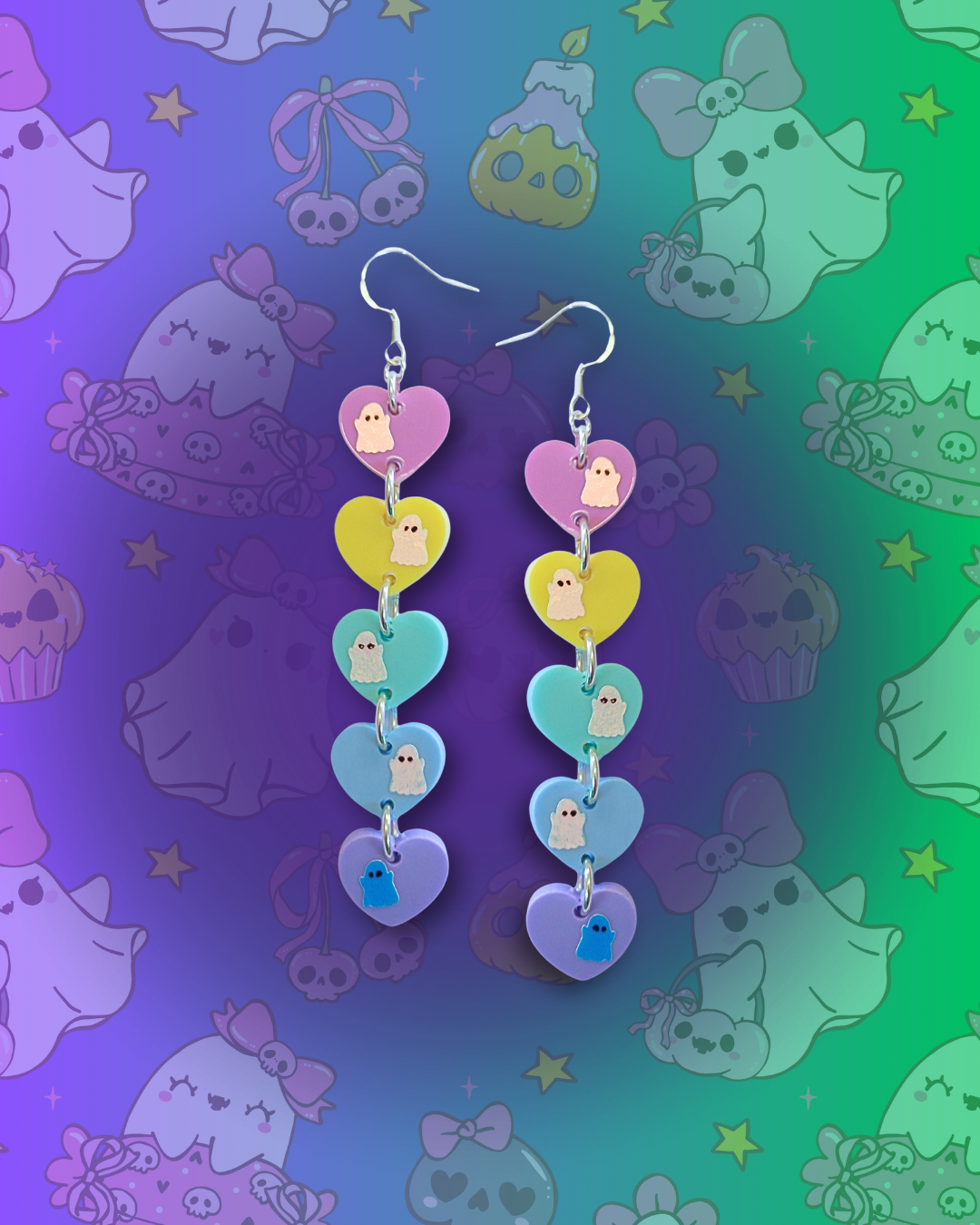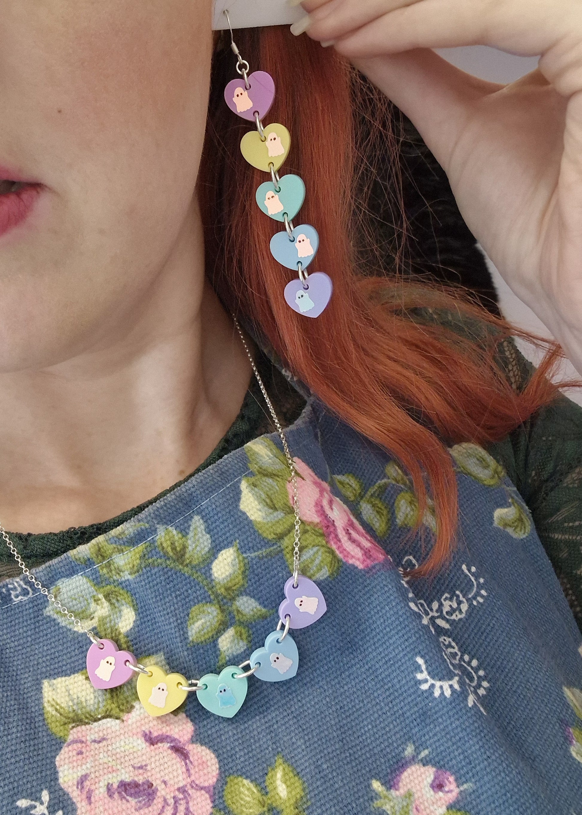 Get ready for a Spooktacular time with our Day 5 design! Choose from a colourful or dark version, both featuring cute mini glow in the dark holographic ghosts. Perfect for adding a touch of Halloween fun to any outfit. ππ»