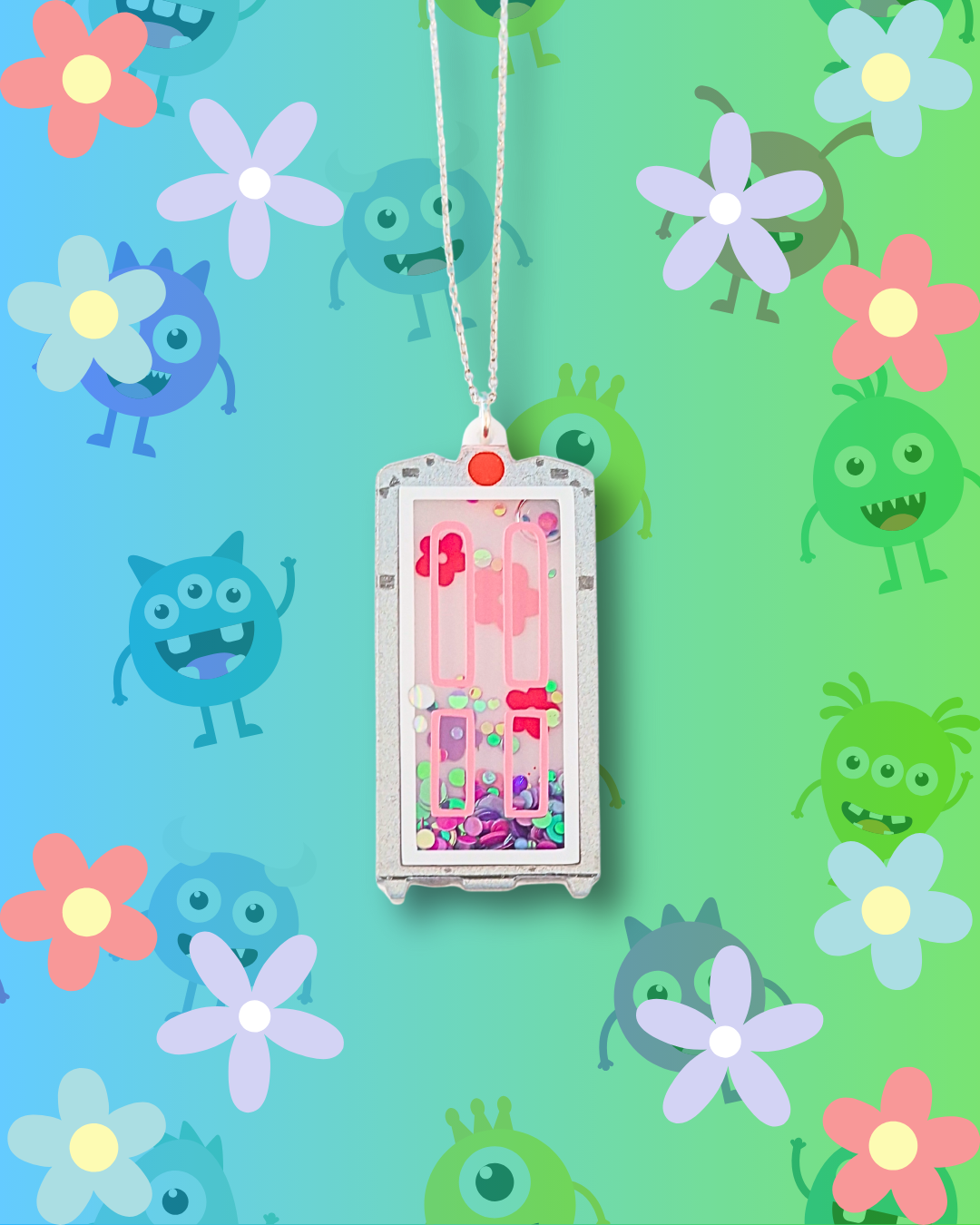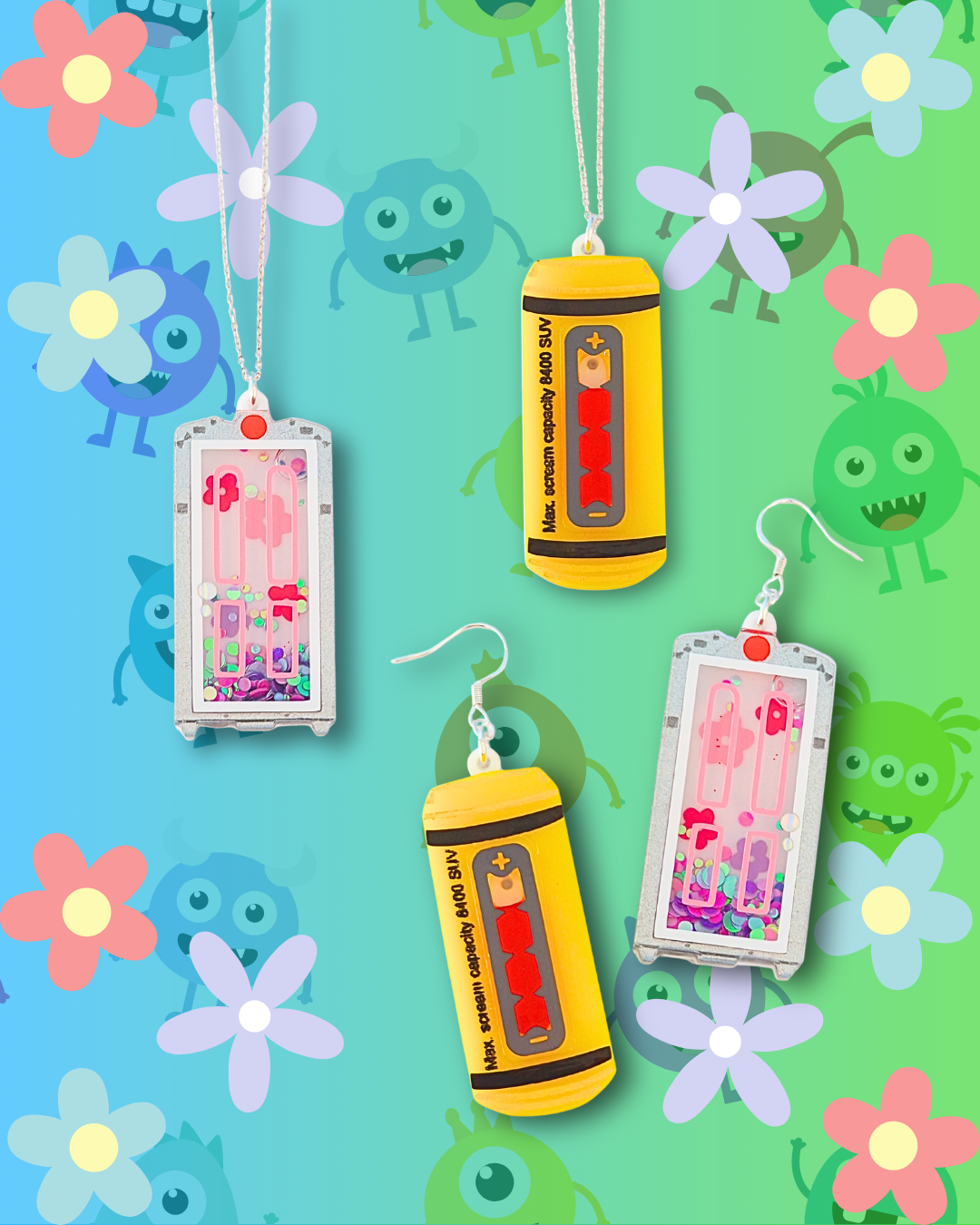 Inspired by a certain monster movie (wink wink), this design features a scream tank with moving red liquid and a door that has a glowing red light and shaker glitter liquid inside.